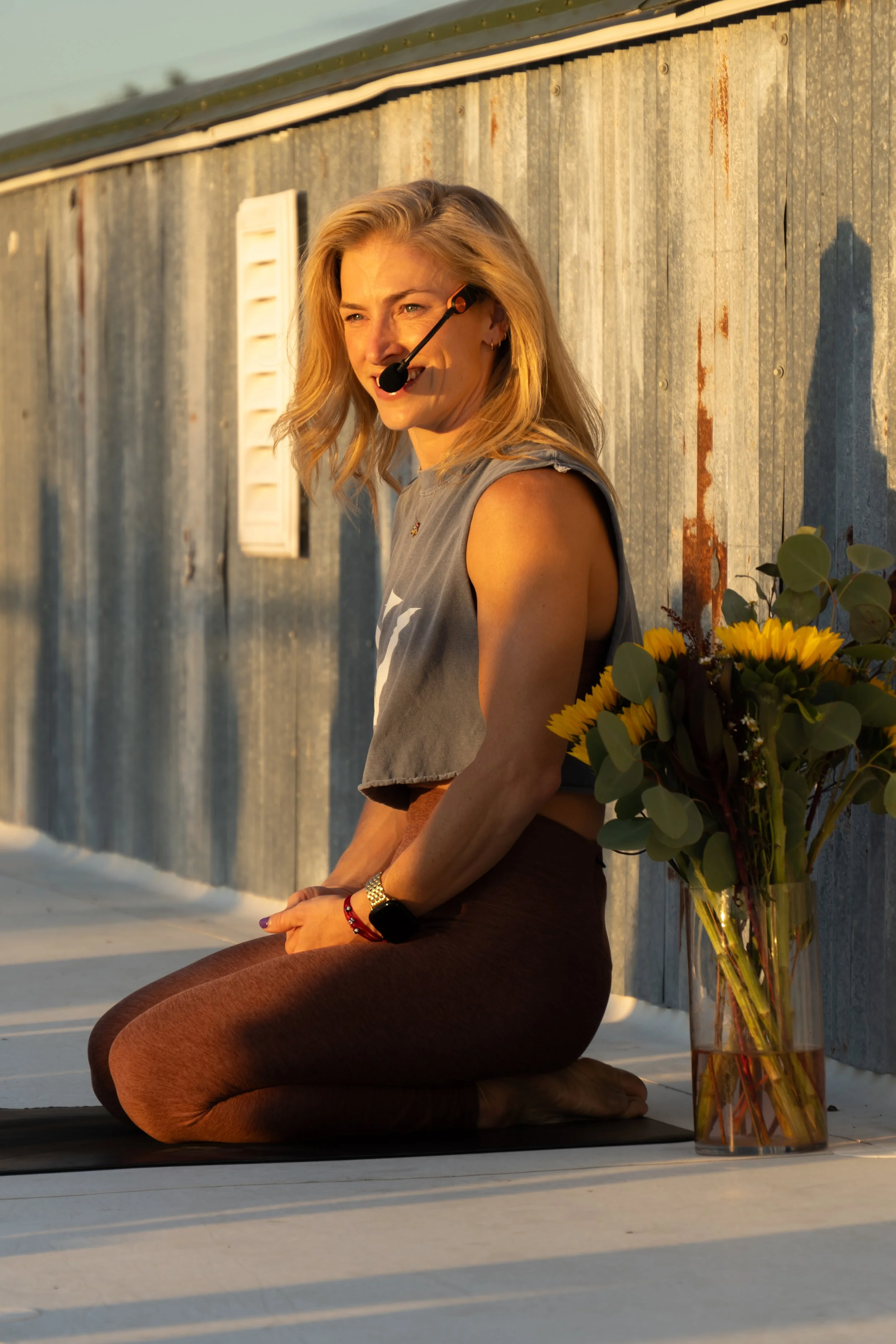 In Houston’s warmer months, we open the space completely so the breeze flows through — blending the grounding of indoor practice with the vitality of nature.
